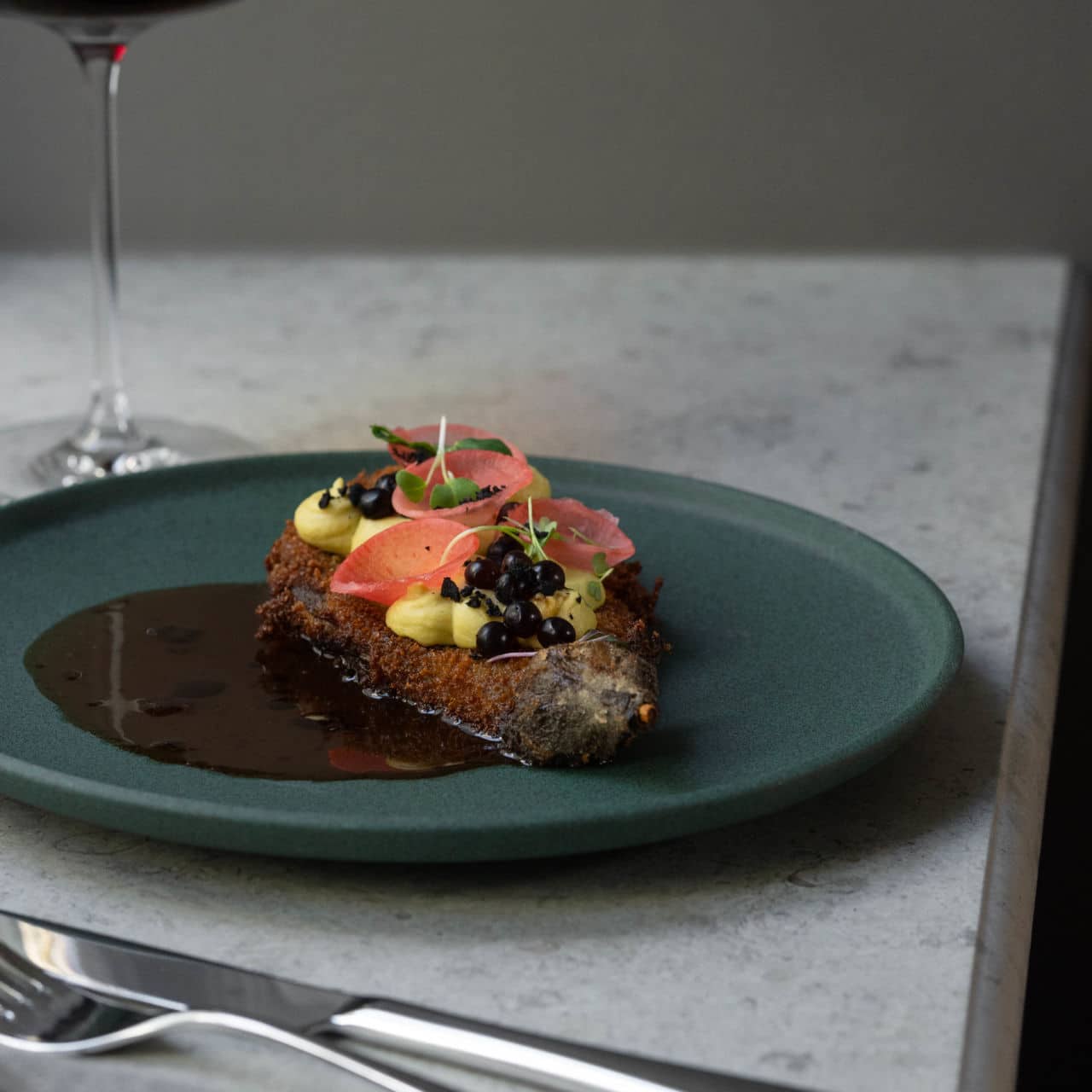 parsnip | marinated charred onion | red wine jus